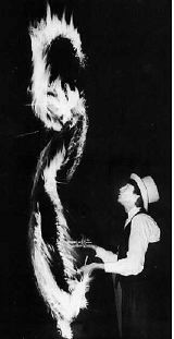 Alex epitomizes the talent, dedication, comraderie, originality and all-round chutzpah that are characteristic of this remarkable group of people. The ex-patriate Yugoslav marionette group, Arthur & Co., has been on tour for five years! Self-taught they've set-up their show on the cobbles of virtually every European country which has let them in. They've developed their own specialized techniques of manipulation, their hands dancing like demented spiders tangled in a web of strings and sticks. Their marionette characters are a cast of of crooning, strumming nightclub musicians manipulated with a whimsy that appeals to adults and children alike.