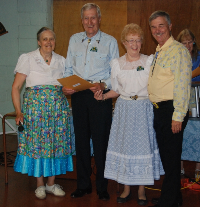 The 2013 Alguire Memorial Callers School was held at the Elm River Park Campground in Glenholme, with a class of eight enrolled. Nova Scotia callers Dottie Welch and Kerry Fletcher were assisted this year by CALLERLAB accredited caller coach Betsy Gotta from new Jersey. The currriculum covered the full CALLERLAB recommended School Curriculum, with training levels customized for both new and experienced callers. A significant bonus this year was a three day mini-school for three round dance cuers presented by Betsy's husband Roy, who is currently the Vice Chairman of ROUNDALAB.
