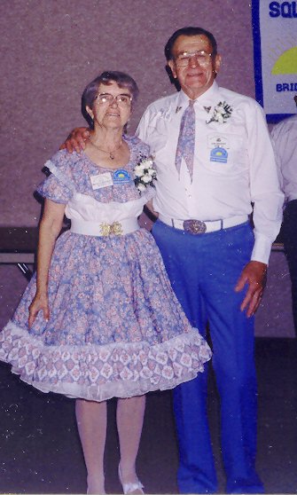 Retired caller John & Marcella Medicraft were presented with corsages by Moyle & Marjorie Crouse. Jimmy& Carolyn Kaulback presented caller Neil & Kathy Dorey with corsages.