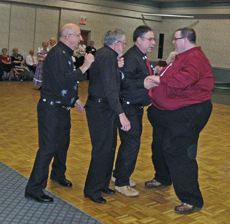 Lining up for time with Terry Hebert during the closing round dance Saturday night