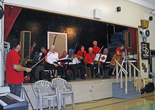 July 1 dawned warm and clear - excellent weather for strutting our stuff on the Halifax Parade Grounds. Our volunteers put on a good show for the assembled crowd. From left: Curtis and Pat Mercer, Inge and Bob Rouhoniemi, caller Dottie Welch, Joan and Don Embree, Judy and Dave Nickerson.