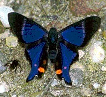This is among the largest of the rainforest butterflies with a wingspan of up to 155 mm. The males (pictured) are much more frequently observed than are the femailes which spend most of their time high in the rainforest canopy. The foodplant is unknown.